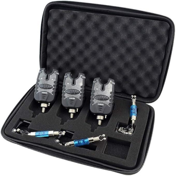 У набір входять три електронні сигналізатори клювання та три свінгери на ланцюжку, які допомагають зафіксувати навіть обережні клювання. Усі елементи зберігаються в міцному кейсі, що захищає комплект від вологи, холоду та випадкових ударів.
