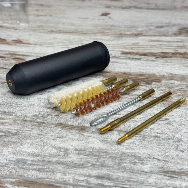 Компактний набір для чищення зброї калібру 9 мм (.38) — це практичне рішення для догляду за пістолетами та револьверами. Усі елементи зручно розміщені у невеликому кейсі, що забезпечує легке зберігання й транспортування, а також робить набір зручним для виїзного використання.