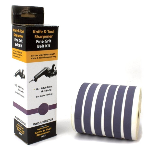 Стрічки Work Sharp зернистістю 6000 грит є універсальними в експлуатації. З їх допомогою можна доглядати не лише за інструментами з прямим заточуванням. Вони також підходять для обробки зубчастих лез та ножів специфічної форми gut hook, які мають виріз гакоподібної форми.