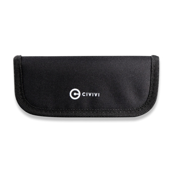 Зберігати та переносити складаний ніж набагато простіше та безпечніше, якщо в арсеналі є спеціальний чохол C-01 від бренду Civivi. Цей аксесуар уберігає інструмент від впливу вологи, забруднення, а також від появи подряпин на поверхні клинка та руківʼя в процесі транспортування.