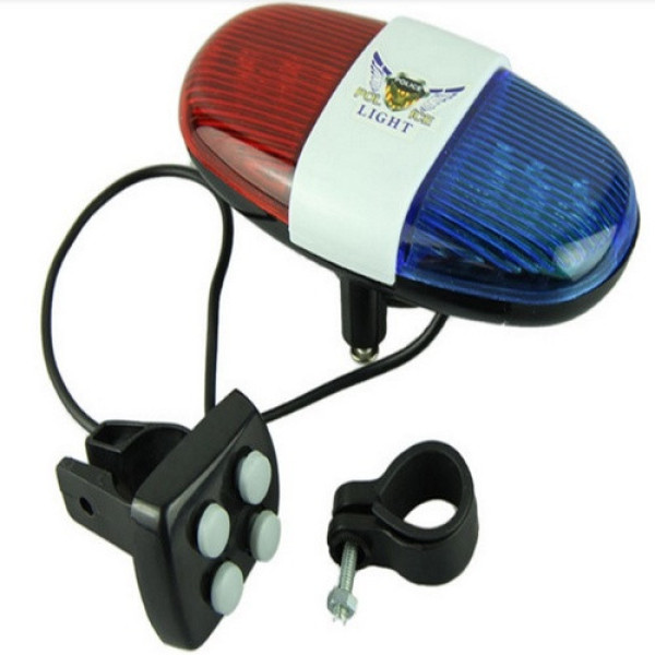 Гудок оснащений 6 світлодіодами (червоними та синіми), які блимають, створюючи ефект поліцейської мигалки, та відтворює 4 різні звуки сирени, що активуються через виносну панель із 4 кнопками. Кожна кнопка відповідає своєму звуку, а при утриманні кнопки звучить тривалий сигнал сирени. Пристрій працює від 2 батарейок AA (не входять у комплект) і легко встановлюється на кермо велосипеда за допомогою кріплення, яке підходить для більшості моделей (діаметр керма 20–30 мм). Розміри гудка становлять 13.5 х 7 х 4 см, що робить його компактним та зручним. Аксесуар виготовлений із міцного пластику, стійкого до погодних умов, і підходить для використання під дощем.